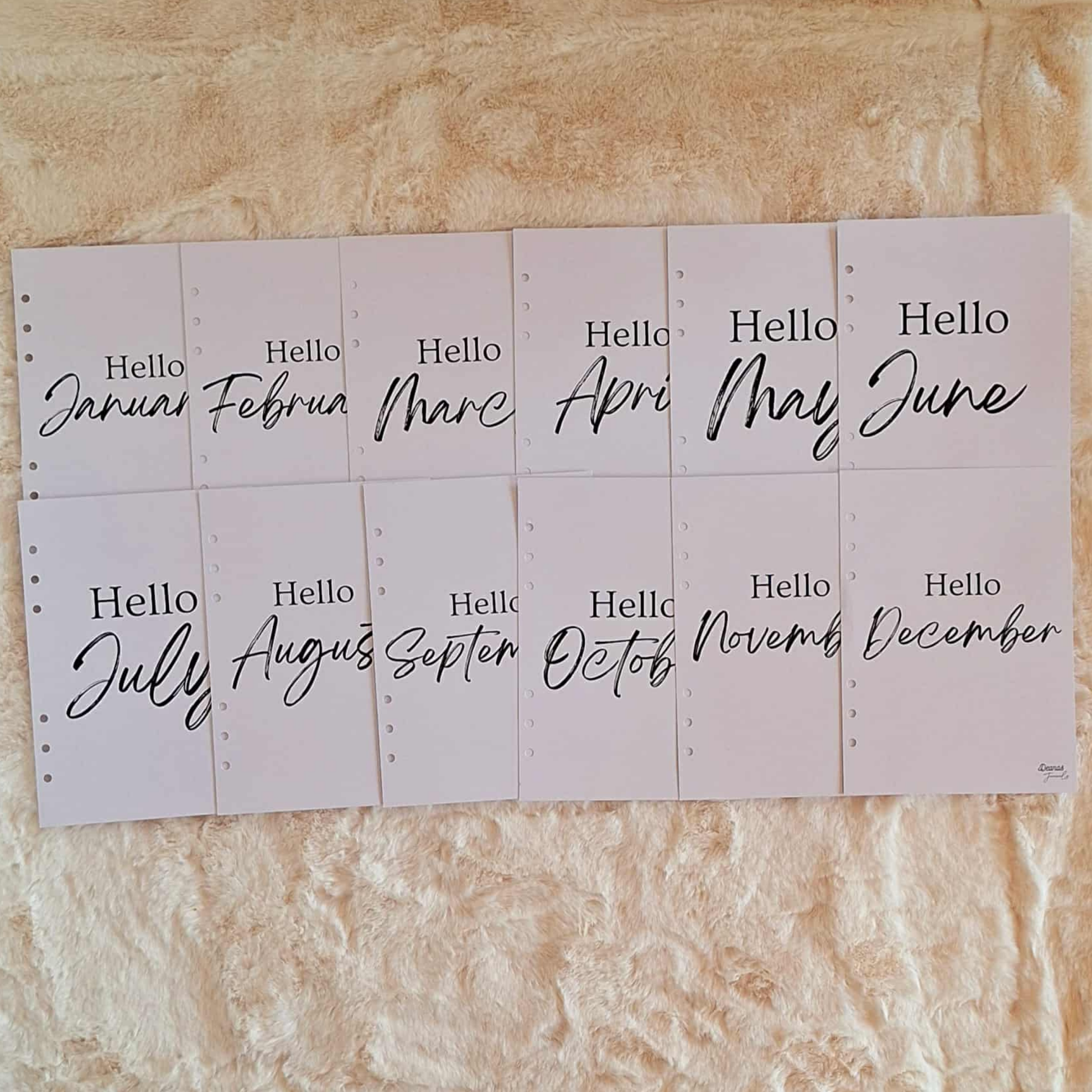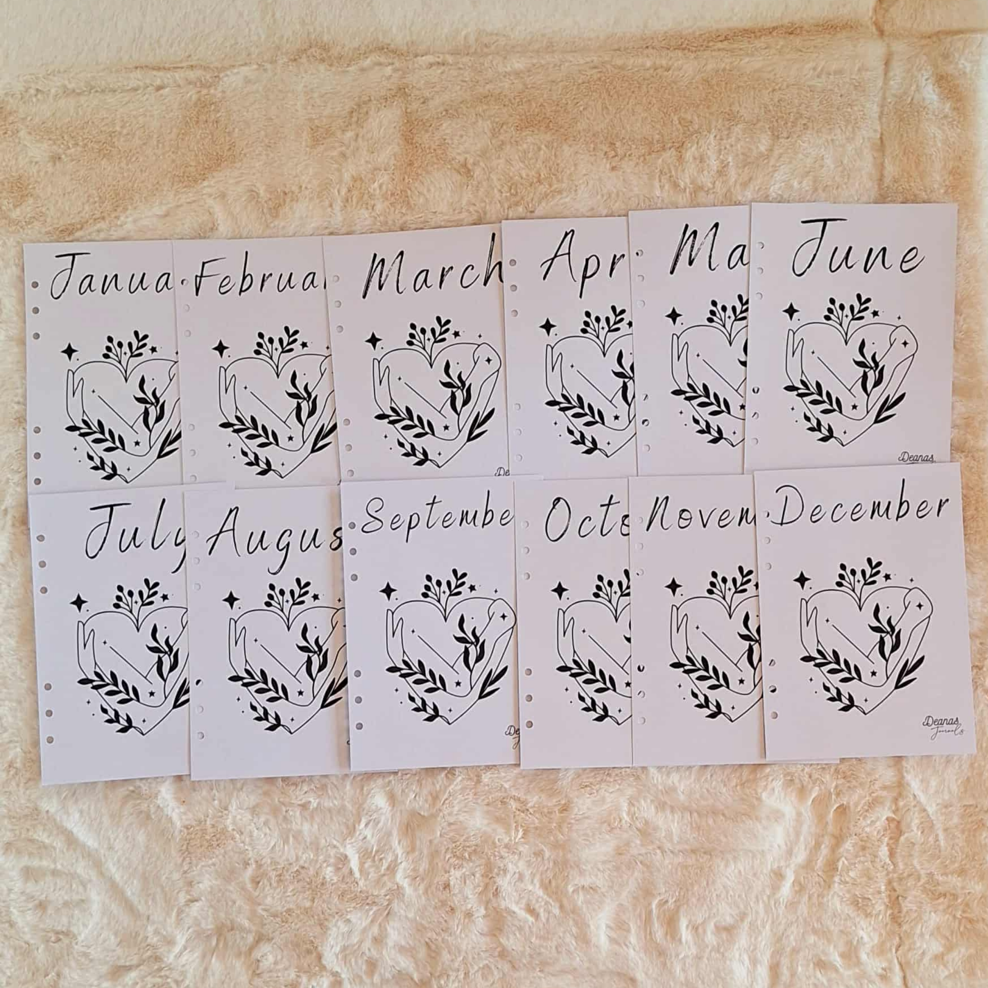 Enhance your organisation with my Month spread sheets, designed to seamlessly integrate with your journal sheets. Each spread sheet clearly marks the beginning of a new month, allowing for quick navigation and better structure throughout your planner.