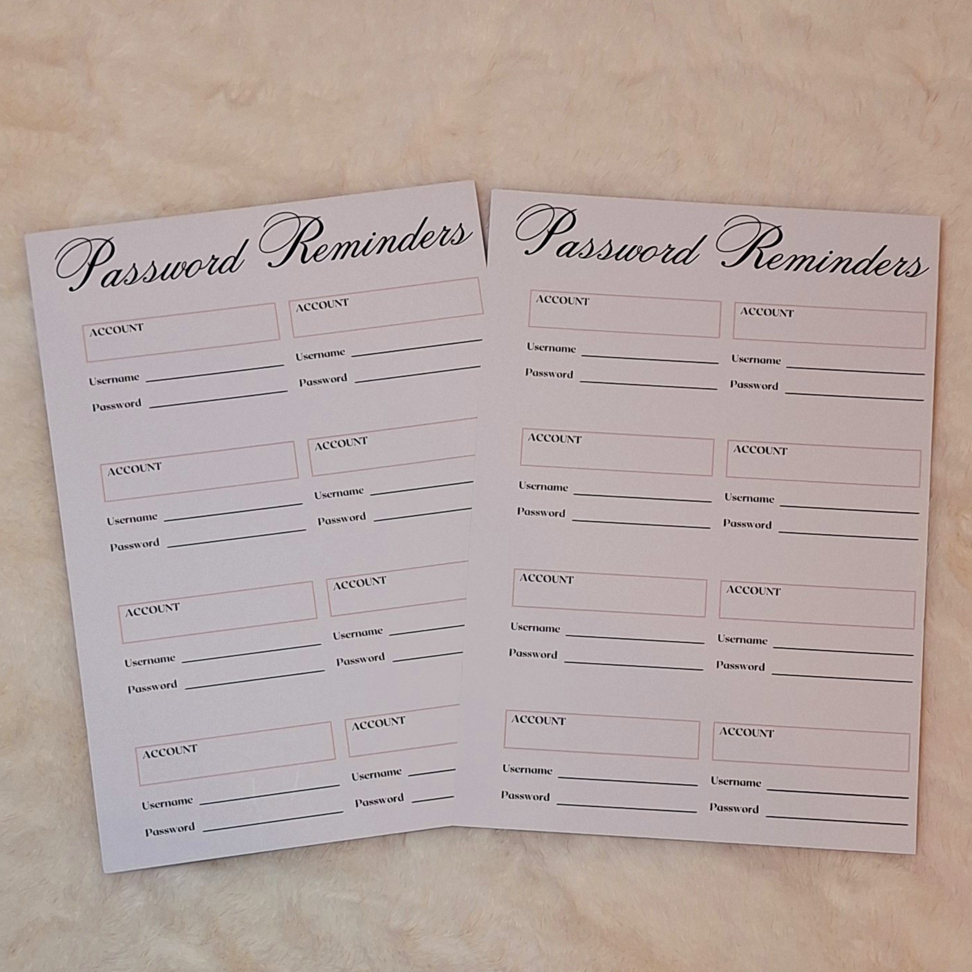 - Password reminders x2