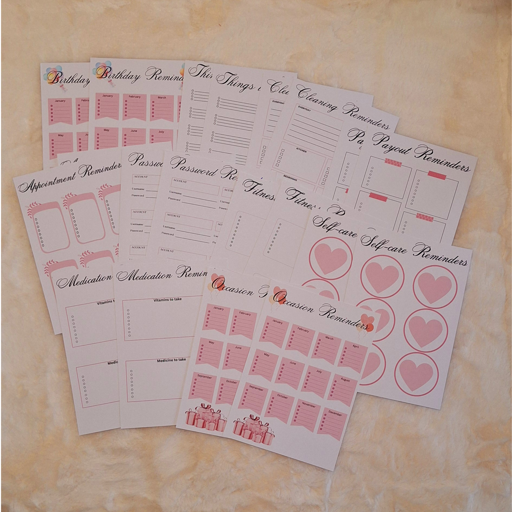 Stay organised and never miss an important tasks with my reminder sheets. Each sheet provides ample space to jot down deadlines, appointments, and priority items at a glance. The clean, minimalist layout ensures clarity without unnecessary clutter, making it easy to scan and prioritise your day. Perfect for desk use, or tucked into your journal.